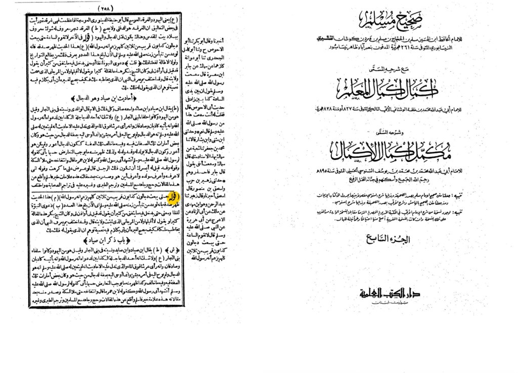 Quelle: Al Ikmal Al Ikmal, ein Kommentar zur Hadithsammlung Sahih Muslim, Band 7 Seite 258