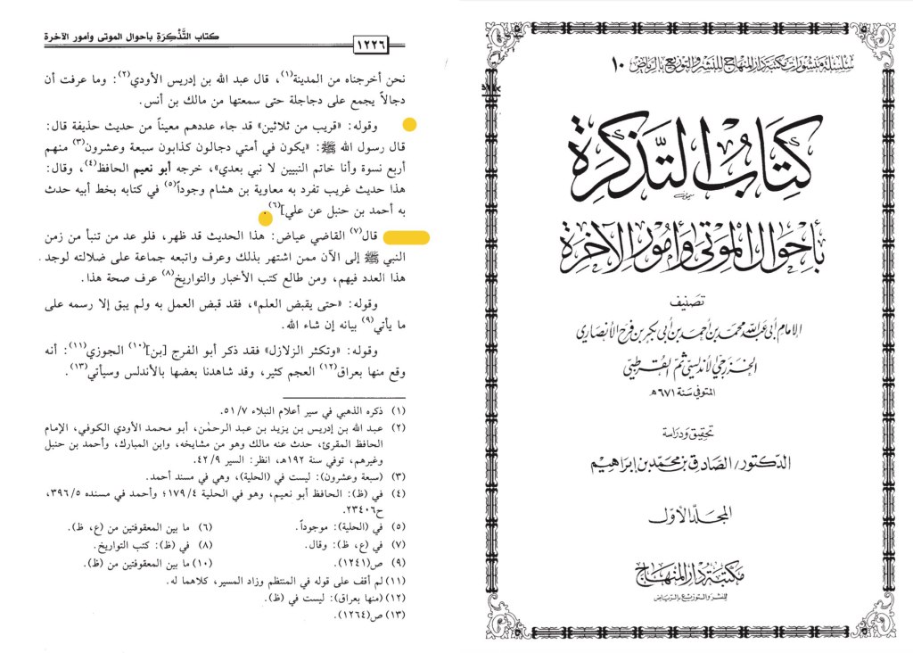 Dieselbe Aussage wird auch in Imam Qurtubis رحمه الله Werk „Kitab at-Tadhkirah“ zitiert.